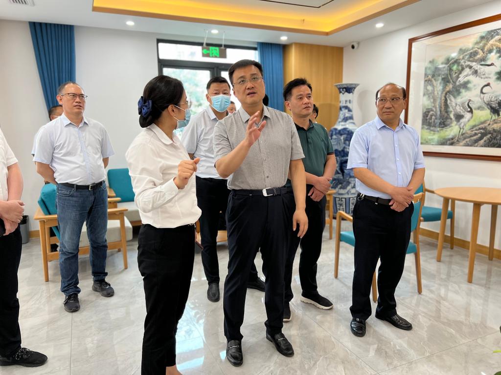 7月29日,淮北市政府黨組成員姚珂、市政協(xié)副主席孫興學(xué)到淮海養(yǎng)老黎苑社區(qū)綜合為老服務(wù)中心和淮海康養(yǎng)中心調(diào)研。集團(tuán)公司總經(jīng)理助理戴禮越陪同。